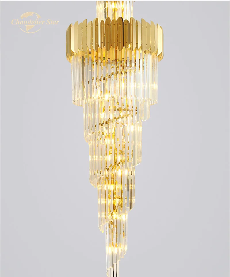 Product Name: Lüks Avizeler Aydınlatma Modern Altın Paslanmaz çelik Kristal Spiral Lambalar Parlaklık Yatak Odası Oturma Odası ışıkları Fikstür