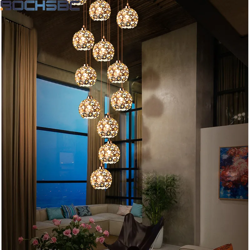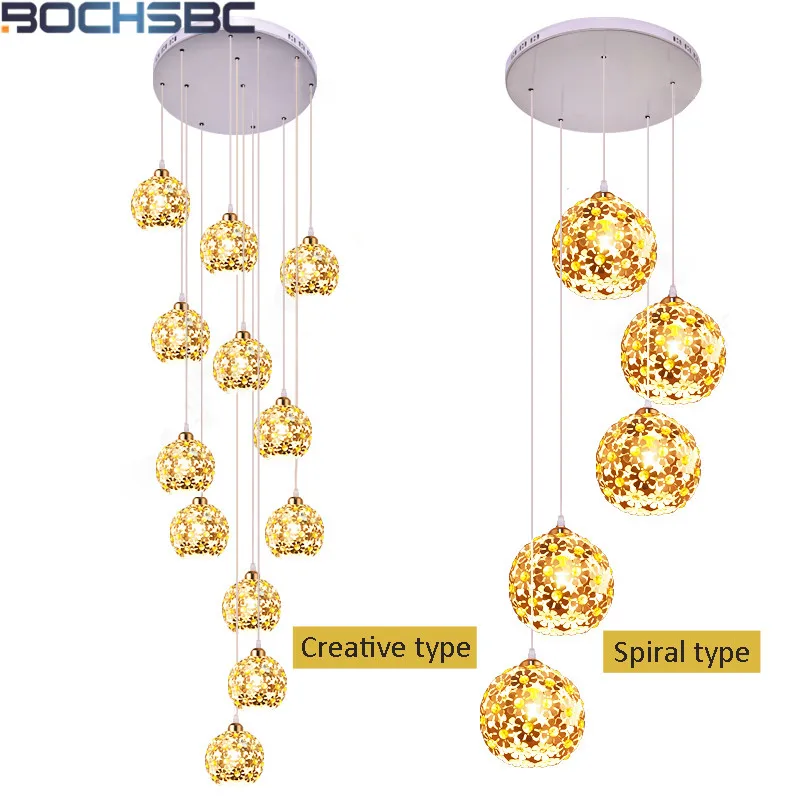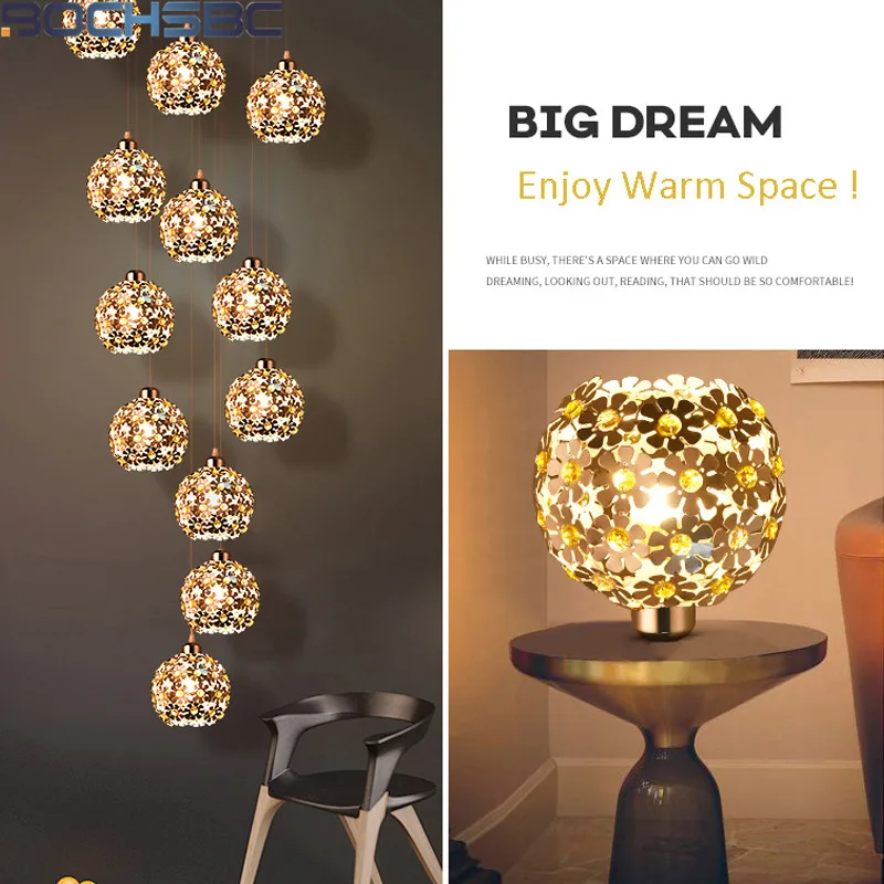 Product Name: BOCHSBC Kristal Çiçek Kolye Lamba E27 Spiral Merdiven Işıkları Art Deco LED Çatı Asılı Lambalar Oturma Odası Salonu Aydınlatma Armatürü